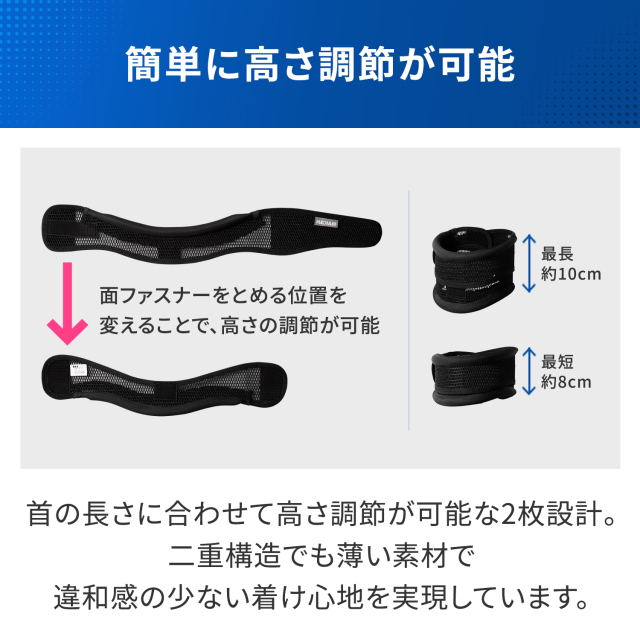 首の長さが8cm以下の方が装着すると首に強い圧迫がかかる可能性があります。
