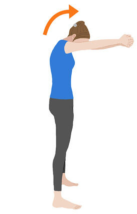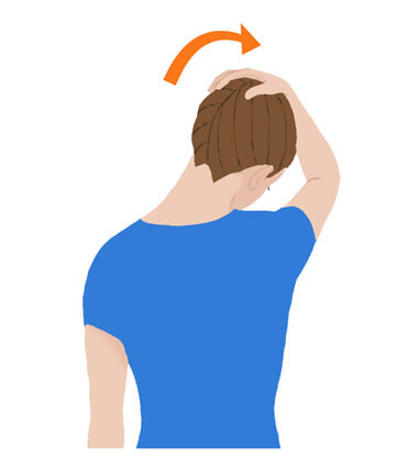 ①片方の腕を身体の後ろの回し、片方の手で頭を軽く抱える