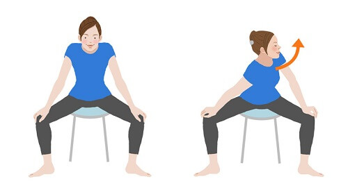 ②身体が丸くならないように骨盤をしっかり立てて、背筋を伸ばす